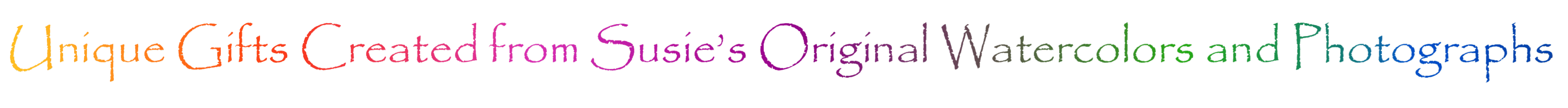 | WELCOME! In Susie Short's Gift Gallery you'll find a wide array of unique items..... all created from Susie's Original Watercolor Paintings and Photographs. |