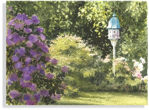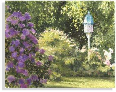 Floral Watercolor Card - Garden Birdhouse-07