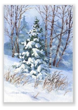 Winter Landscape Watercolor Card 09CCS4-6